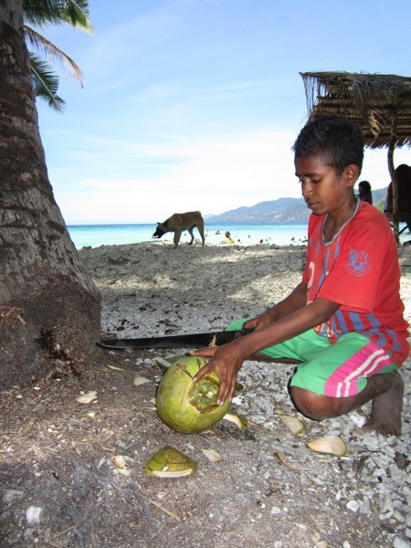 No beach experience is complete without a small child using a large machete to open a coconut for me!